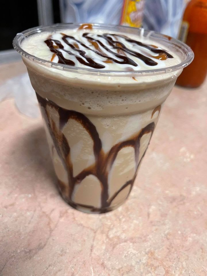Creamy milkshake blended with Kinder Bueno chocolate bars, topped with whipped cream and more Kinder Bueno.